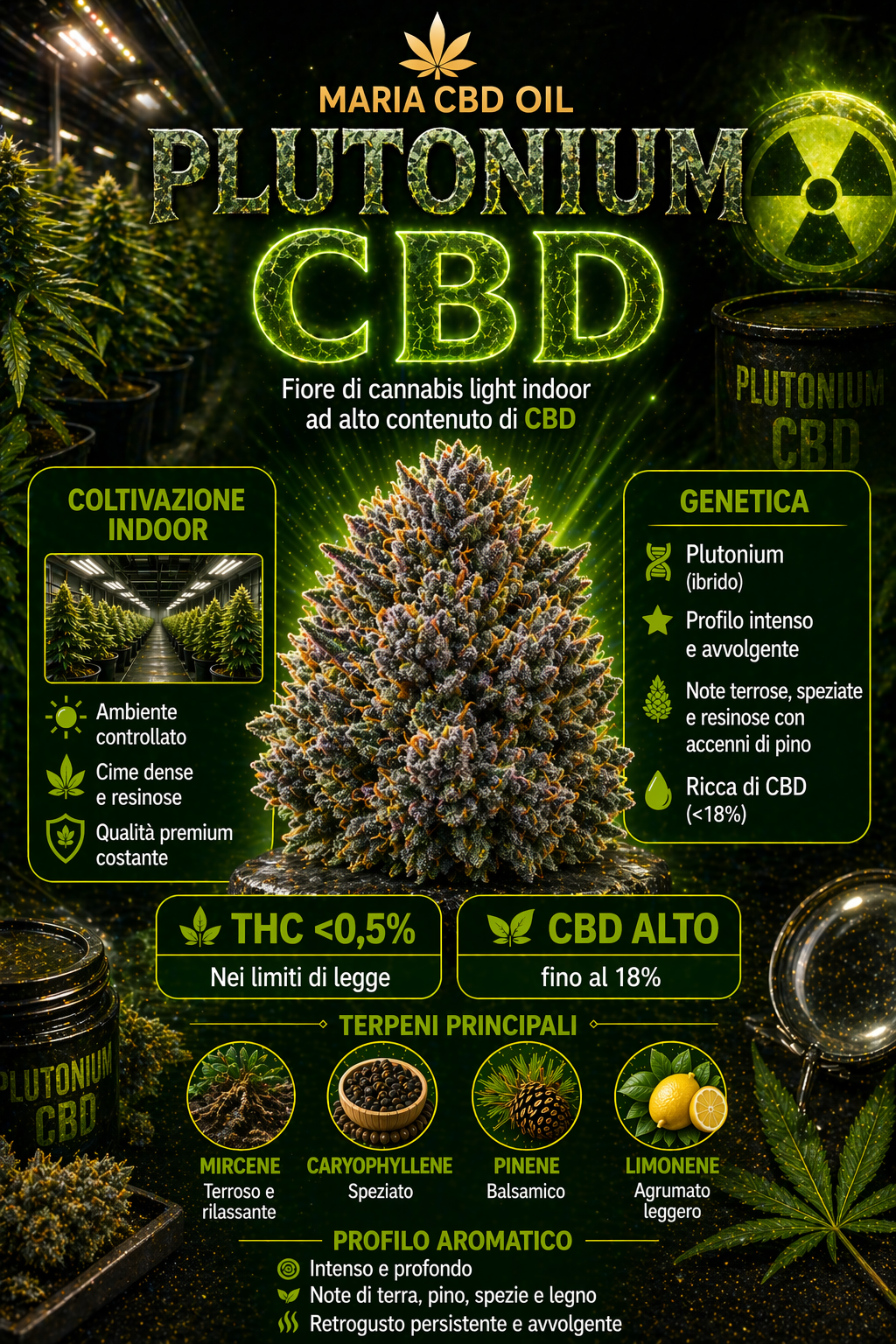 Plutonium zeichnet sich durch kompakte, robuste Buds aus, die sich durch eine tief dunkelgrüne Farbe auszeichnen, angereichert mit violetten Reflexen, die ihr ein elegantes und geheimnisvolles Aussehen verleihen. Kristalline Trichome bedecken die Oberfläche gleichmäßig und verleihen ihr ein glänzendes, harziges Aussehen, während bernsteinfarbene Stempel einen farblichen Kontrast bilden, der ihre ästhetische Qualität unterstreicht. Der Gewächshausanbau garantiert hohe Standards und sorgfältige Pflege und führt zu einem Produkt mit imposanter und raffinierter Optik.